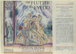 In Earl Ganz' novel, The Taos Truth Game, Myron Brinig appears as the main character and describes the story behind the publication of The Flutter of an Eyelid. The conversation is between Hal (poet, Witter Bynner) and Myron Brinig (p.40-41).